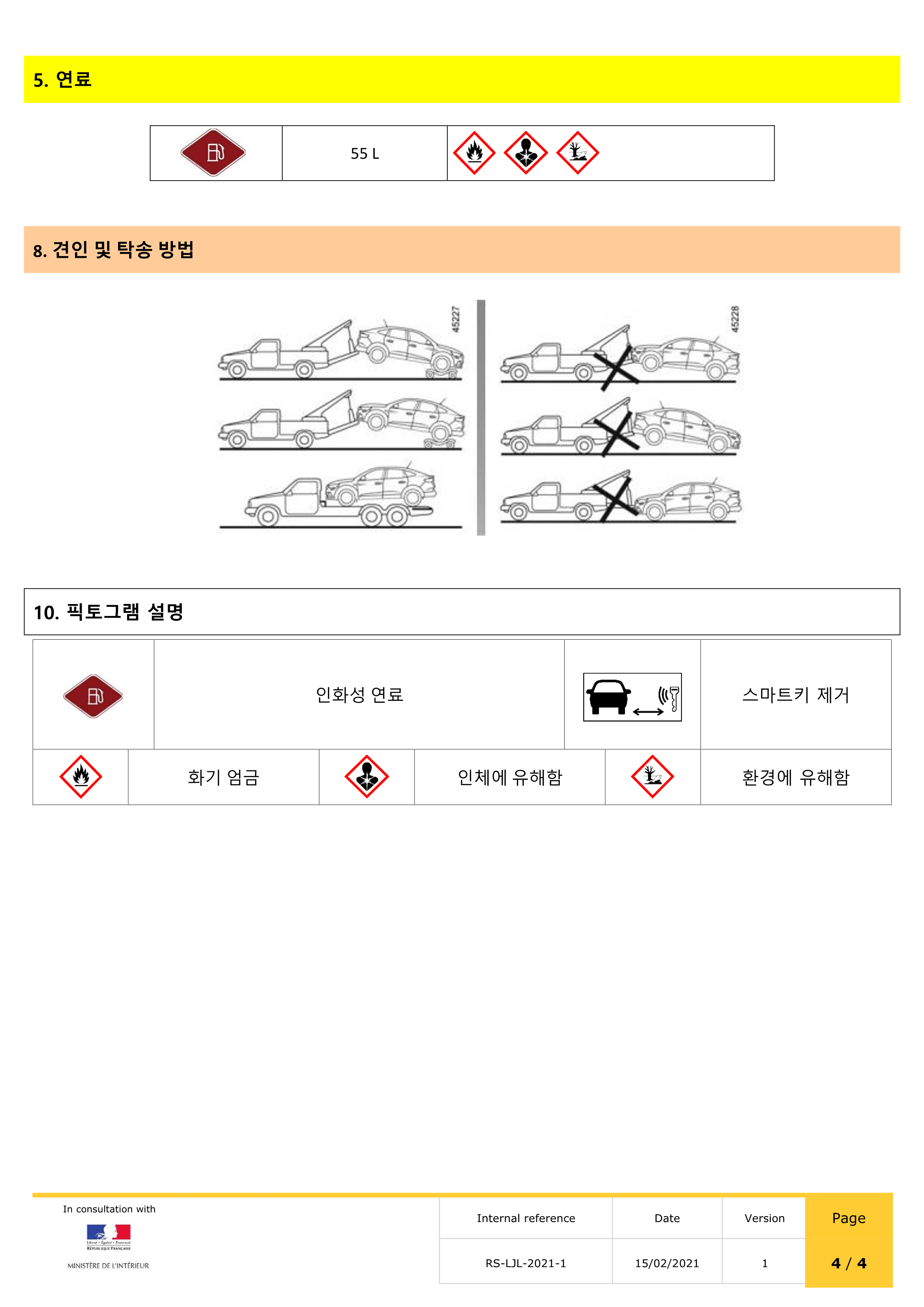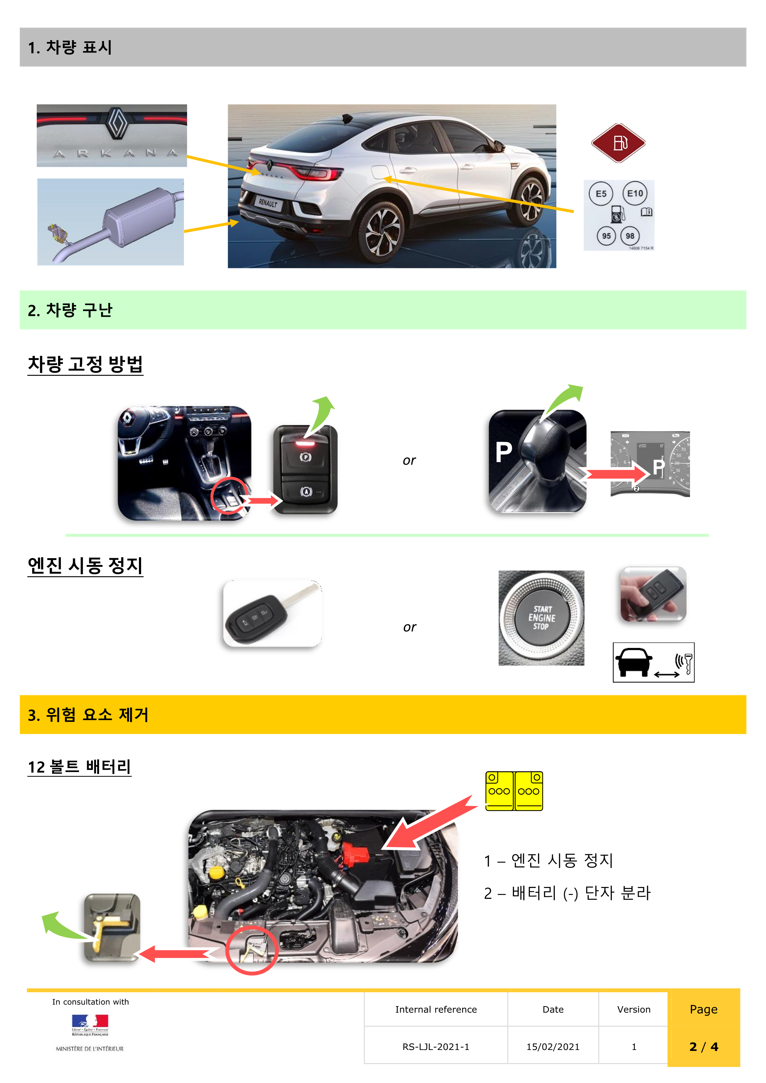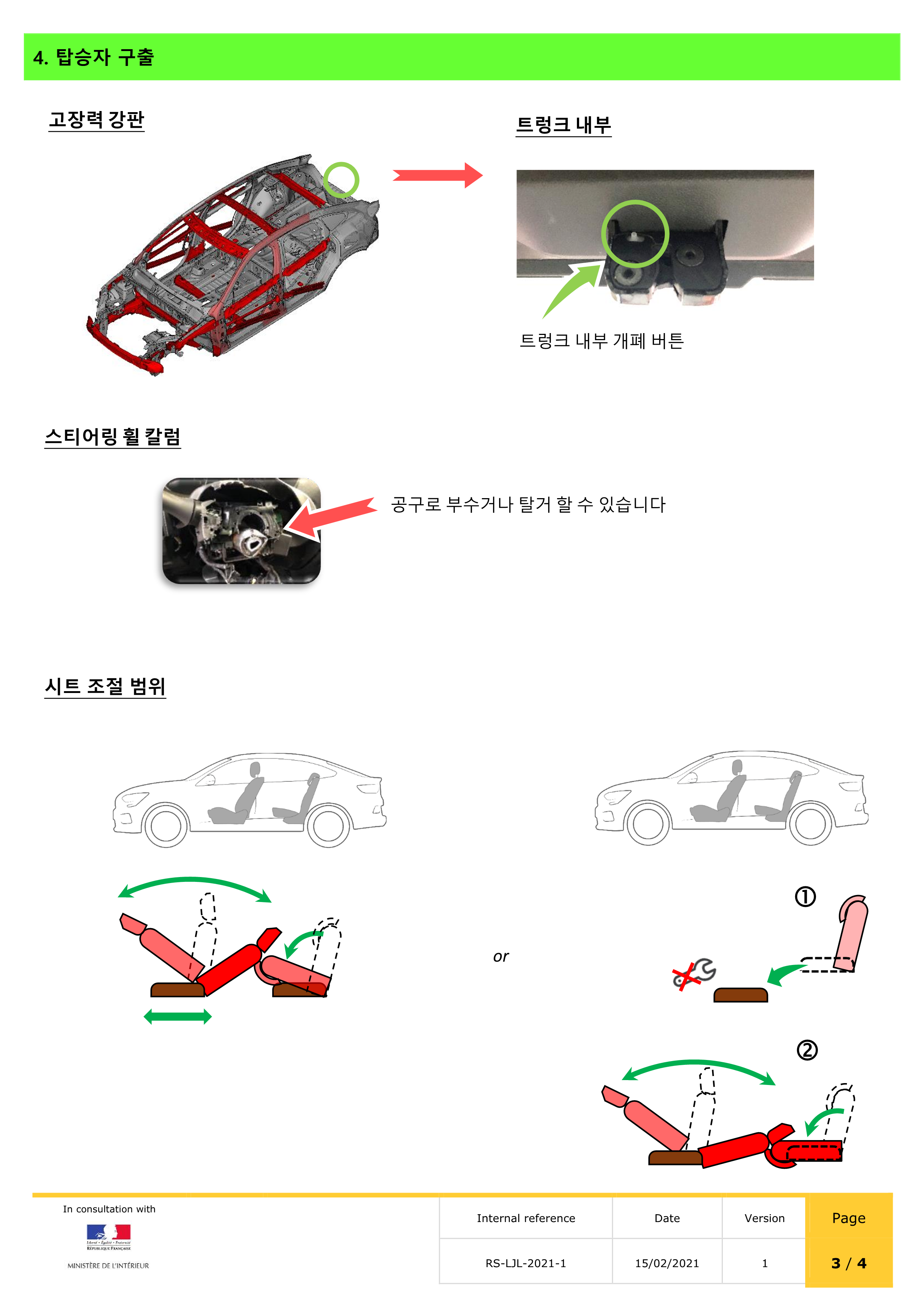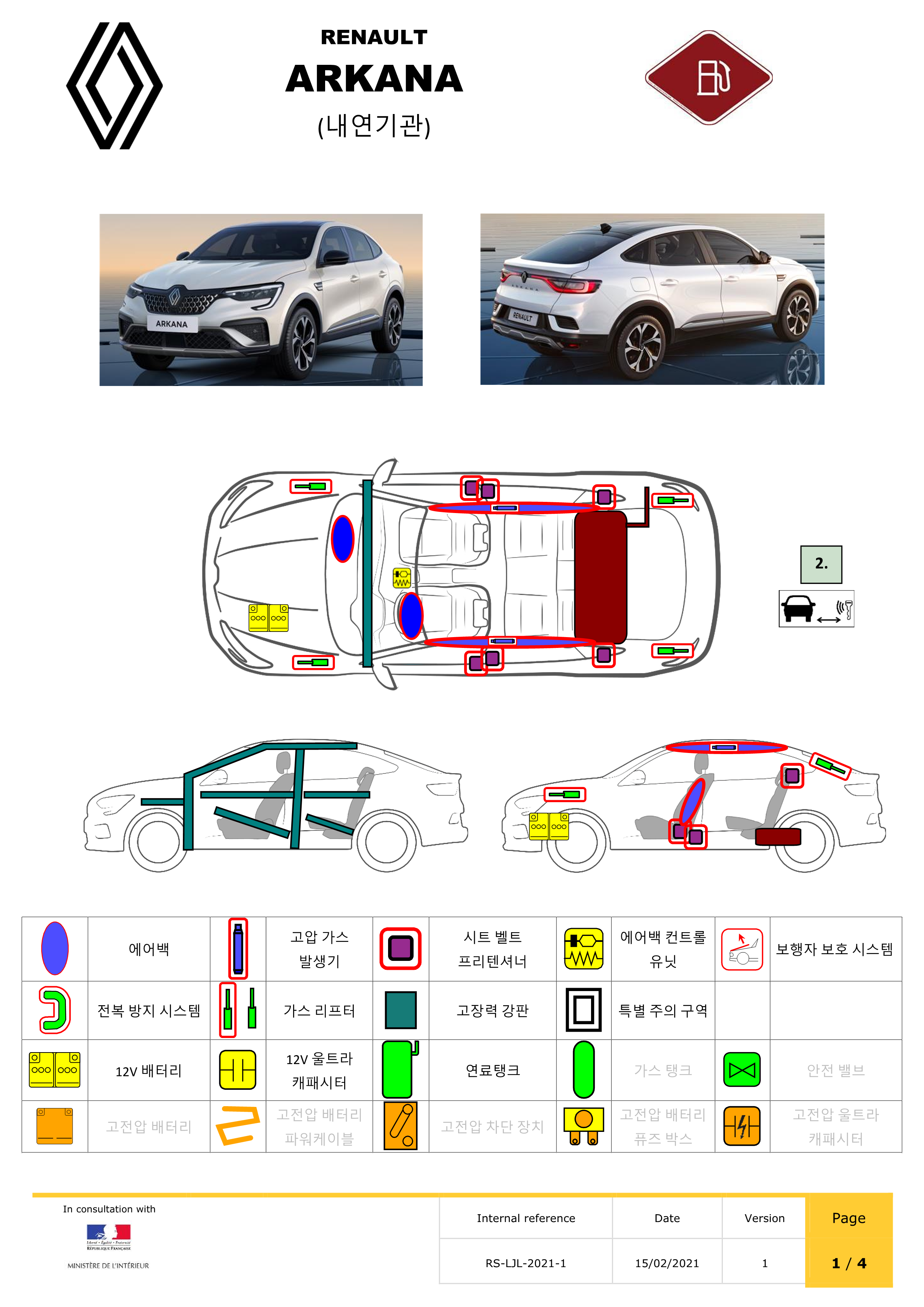 귀중한 기술정보(배터리위치, 에어백, 빠르고 안전한 절단이 가능한위치 등)가 포함된