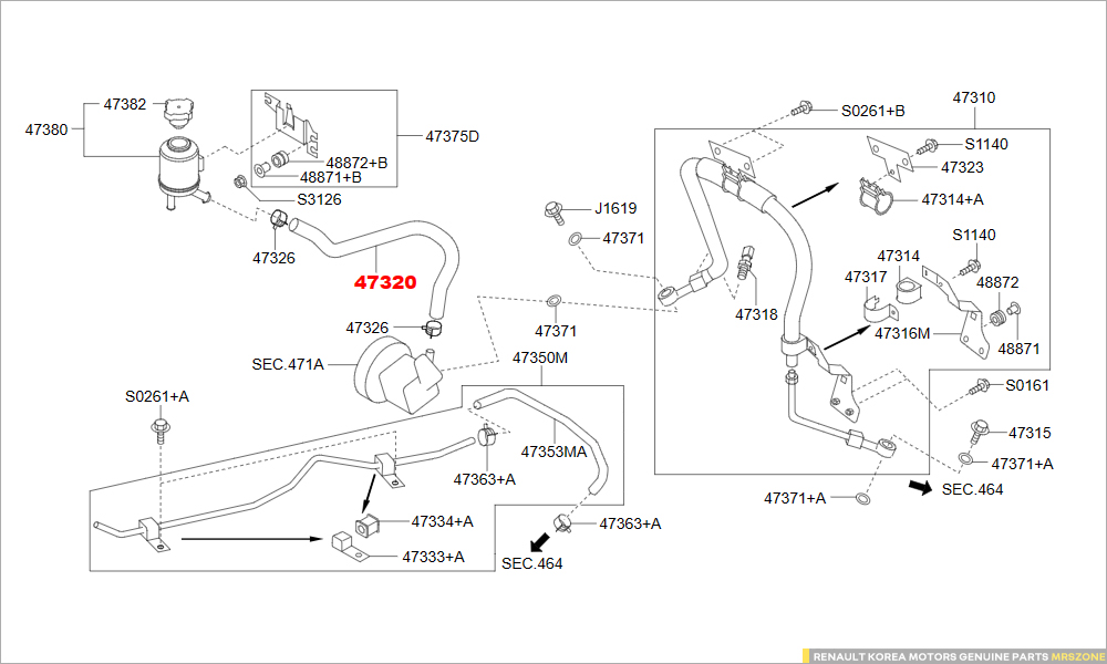 - 아래 부품카달로그 이미지상에서 '47320' 석션호스 양쪽에 적용된