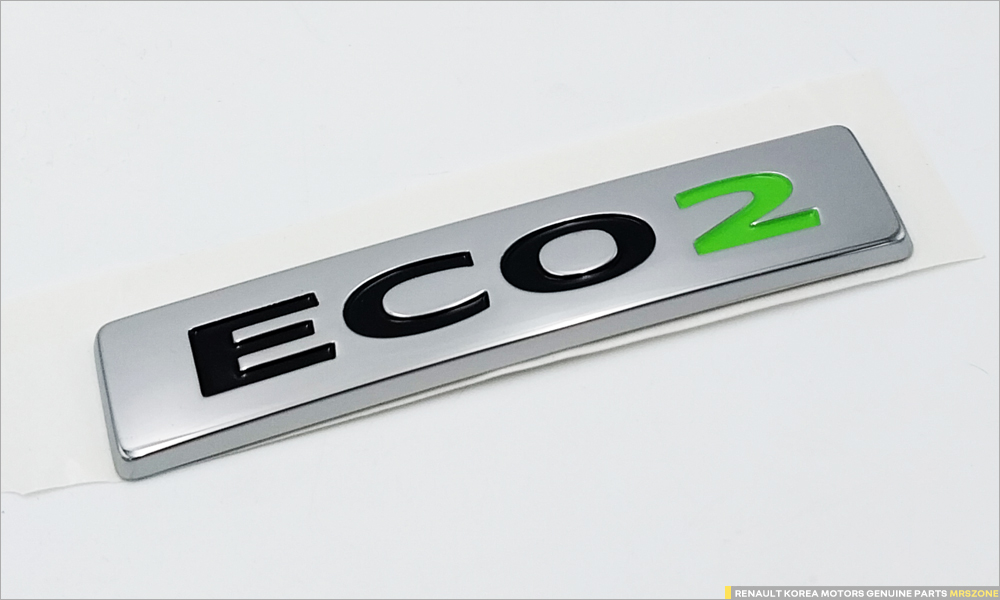 - ECO2가 음각으로 각인되어 있는 크롬 제질의 레터링 입니다.