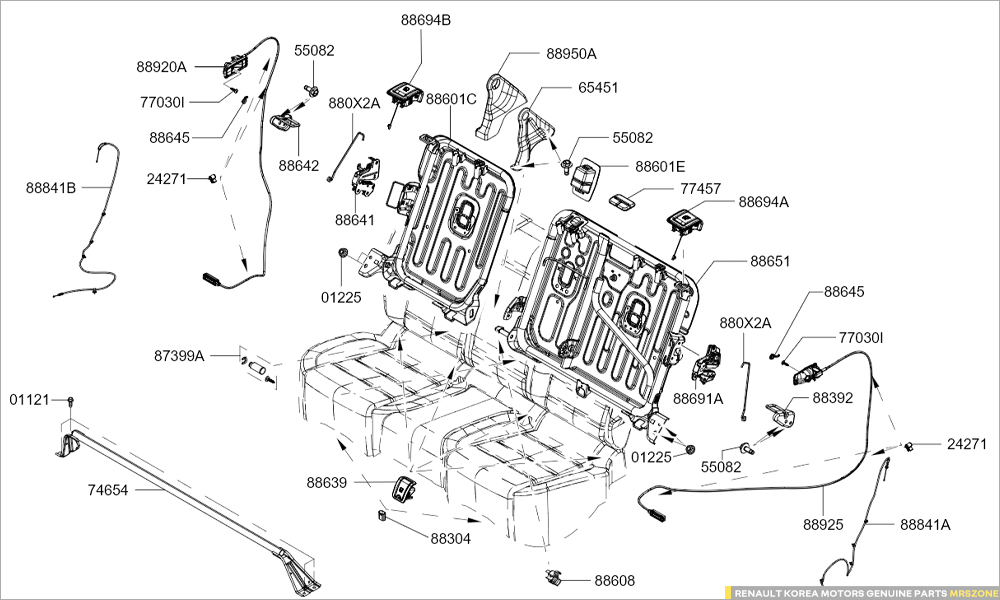 - QM6/뉴QM6 차량 뒤시트에 적용된 부품 입니다.