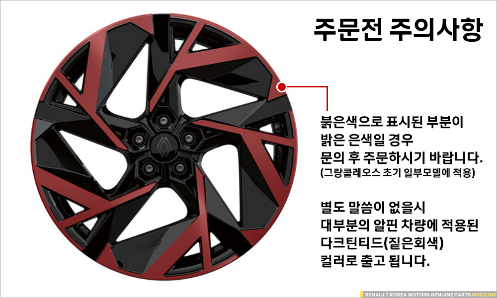 (*중앙의 휠캡 및 휠 고정볼트는 포함되어 있지 않습니다.)