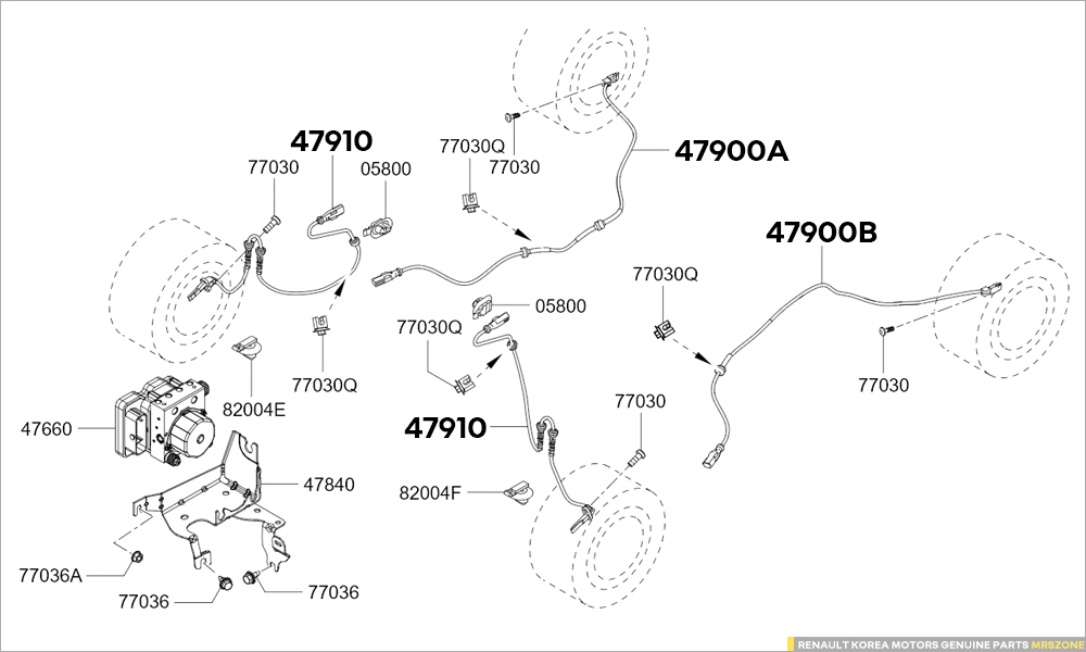 - 아래 부품카달로그 이미지상에서 운전석 '47900B' / 조수석 '47900A' 로 표기된 부품 입니다.