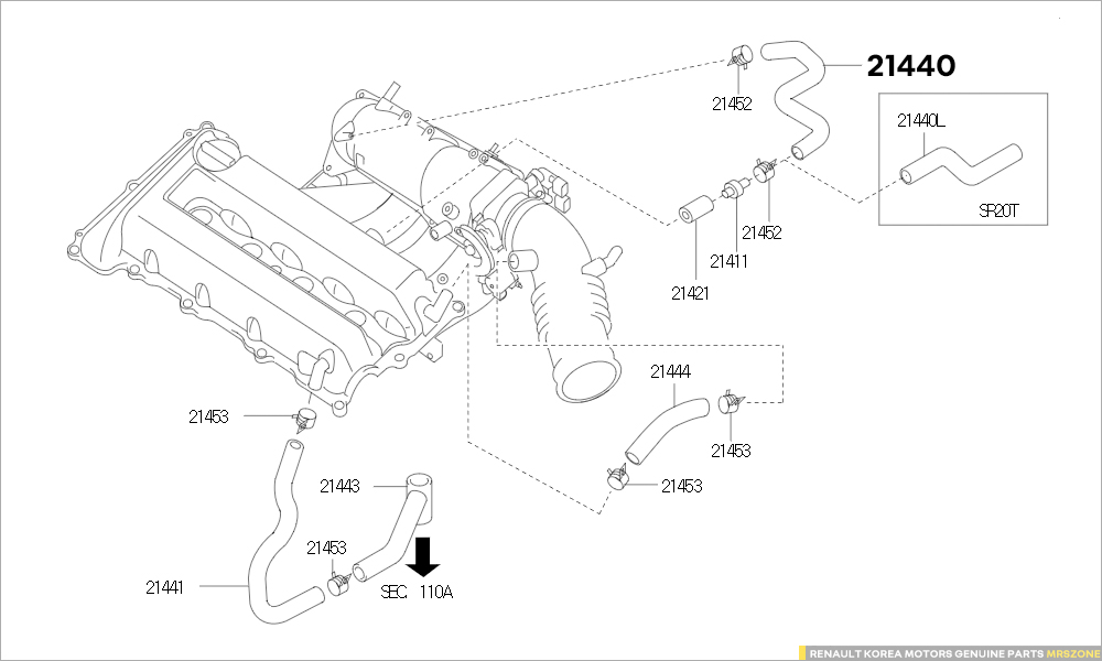 > SM5(SR-04이후/가솔린) 블로우바이 호스(21440)